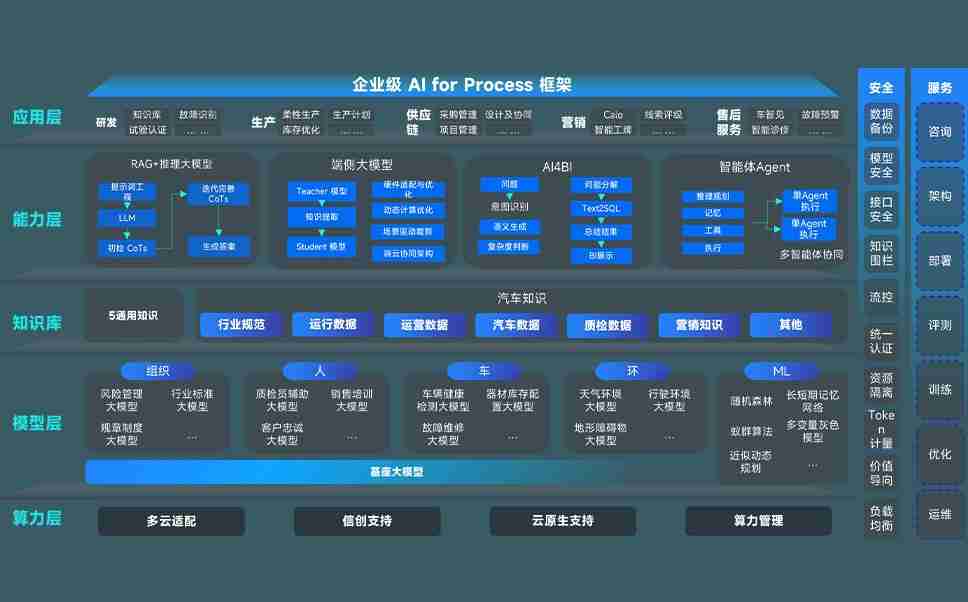 尊龙时凯问学智车解决方案是一套基于AI技术的汽车行业智能化系统,,覆盖从底层算力到顶层AI应用的全栈方案。。。。方案由算力层、、模型层和应用层组成:算力层,,方案支持多种一体机配置,,,具备云端灵活部署、、多云适配以及动态优化计算资源的能力;模型层,,尊龙时凯问学平台版提供了企业级AI应用一站式构建与管理平台,,支持基于后训练强化技术的汽车企业专属模型的训练、、评测和运营;应用层,,尊龙时凯问学DeepSeek版提供包括超级员工、、智能招采、、、、智能营销、、、、智能客服、、、、AI for BI等一系列解决方案,,,,可助力汽车行业实现数字化转型,,,让管理更智能、、、、响应更敏捷。。。